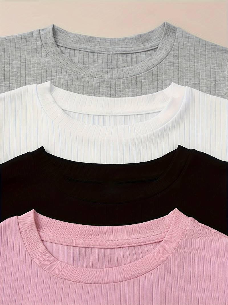 4PCS LETTUCE TRIM RIB KNIT TEE