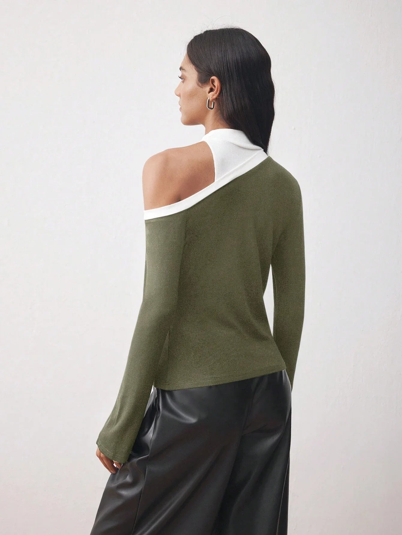 ASYMMETRIC CUT-OUT SHOULDER FITTED KNIT TOP OFF THE SHOULDER SHIRT