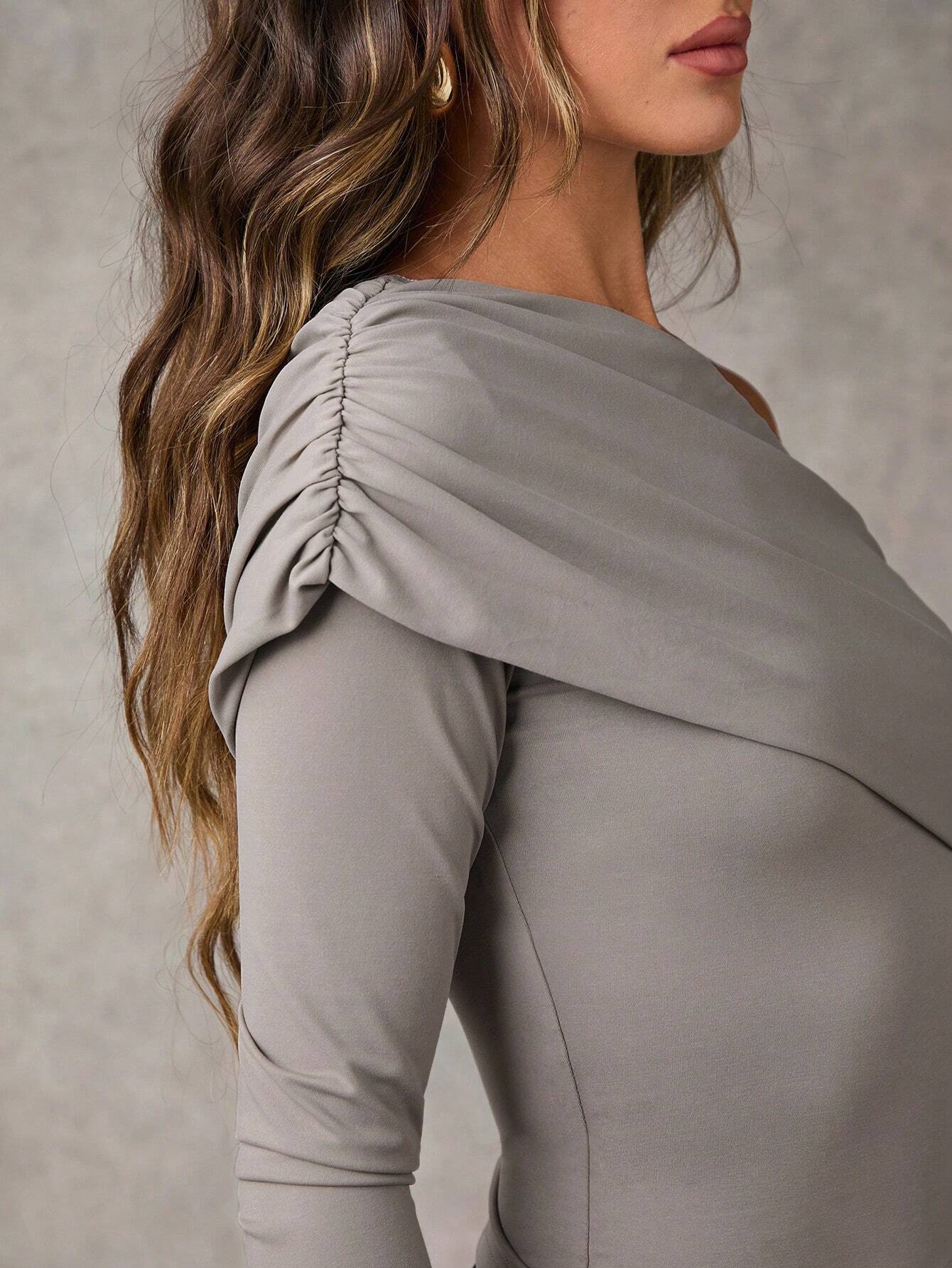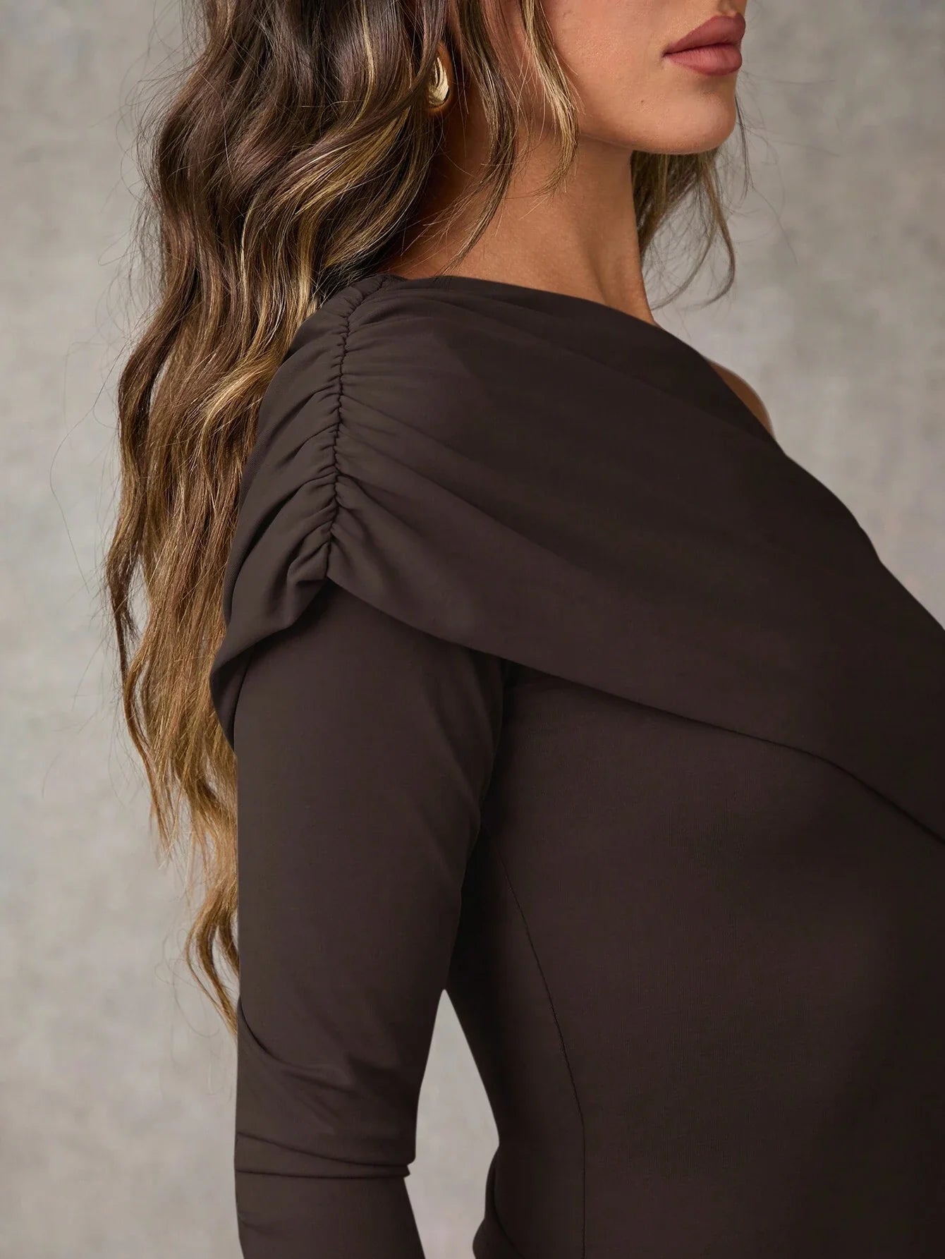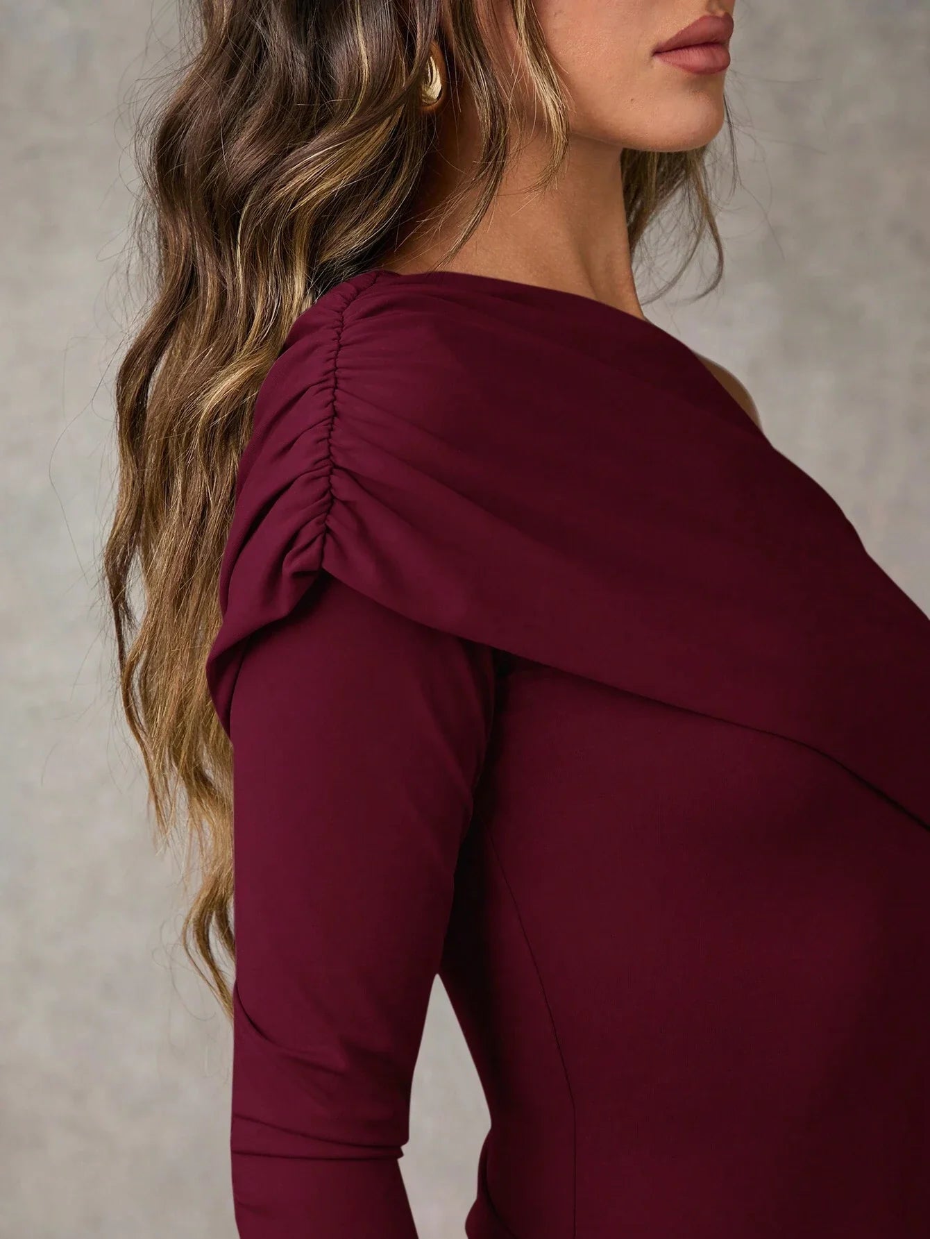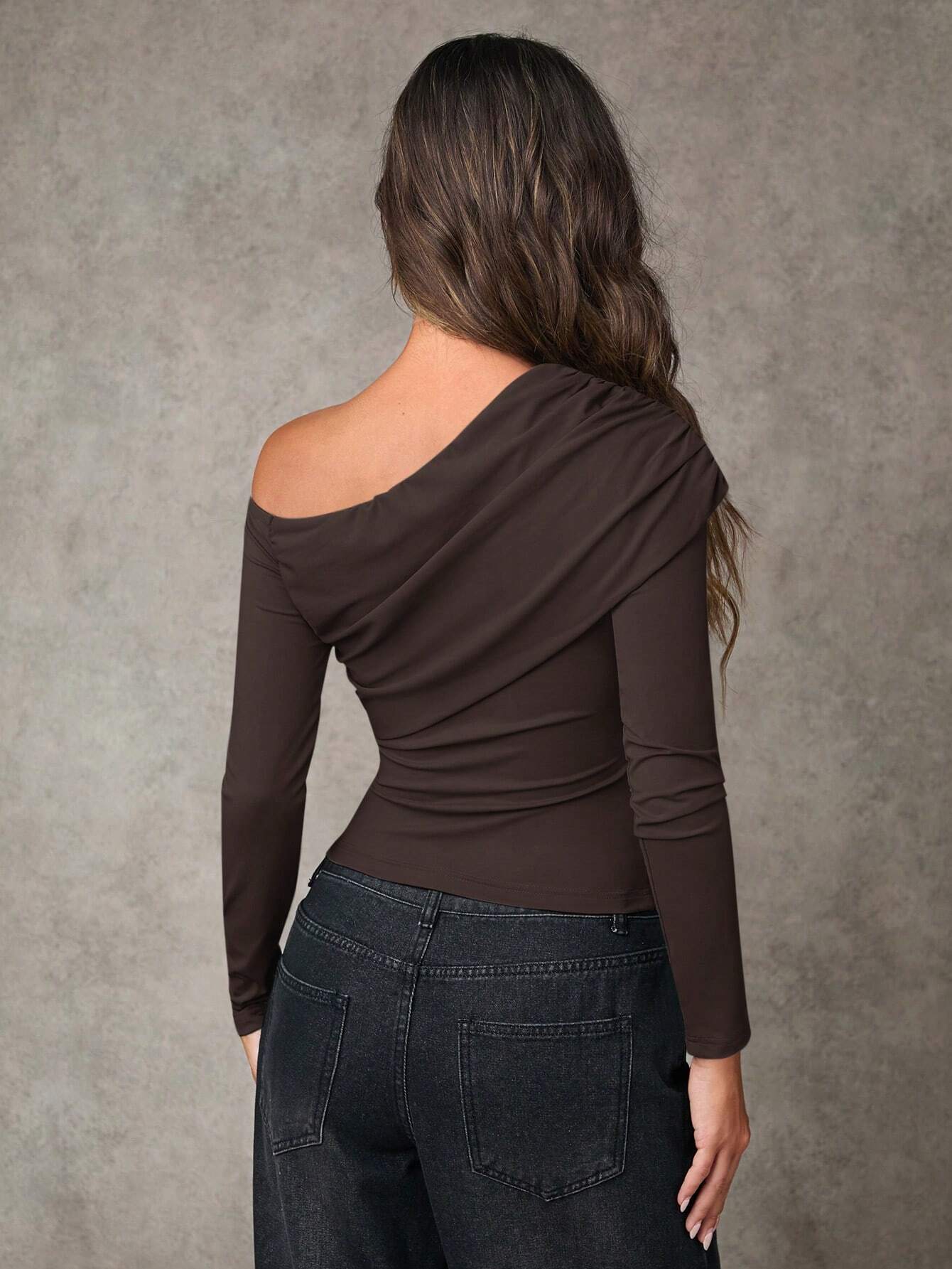 CASUAL ASYMMETRICAL COLLAR FITTED LONG SLEEVE TOP