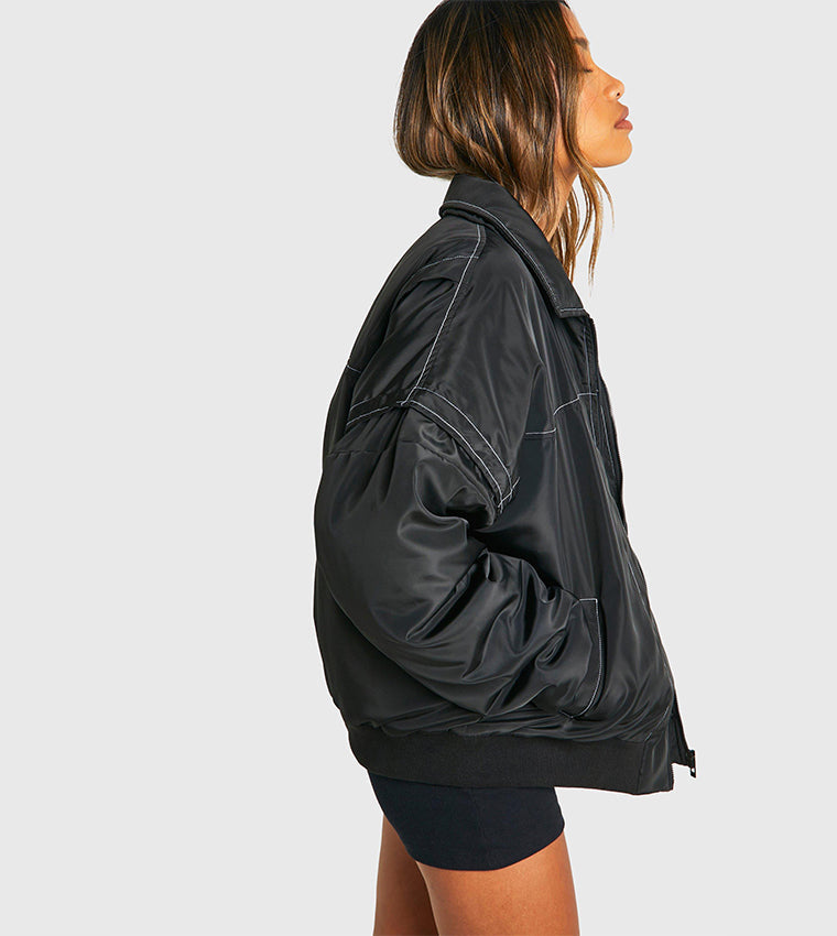 CONTRAST STITCH DETAIL OVERSIZED BOMBER JACKET