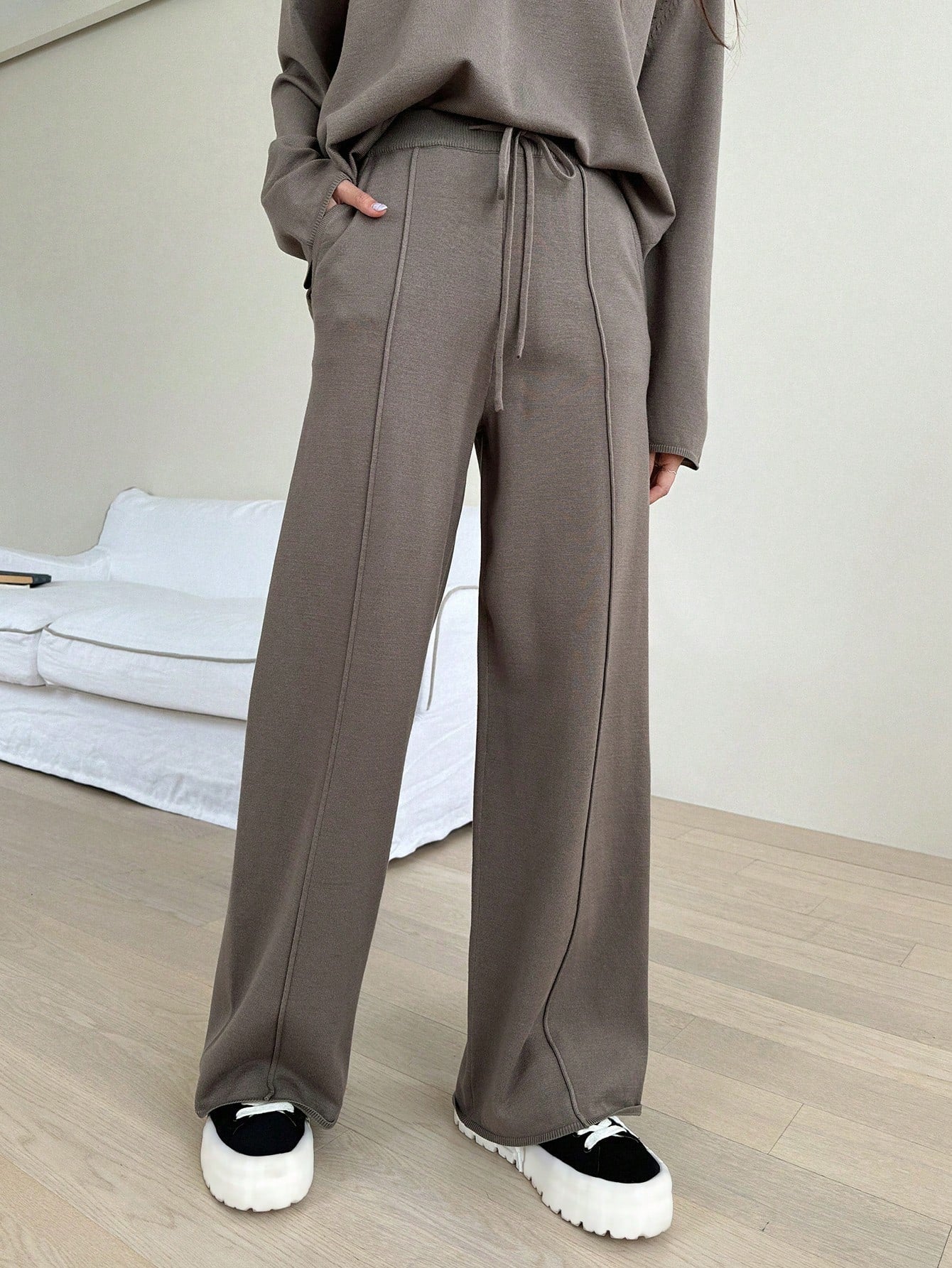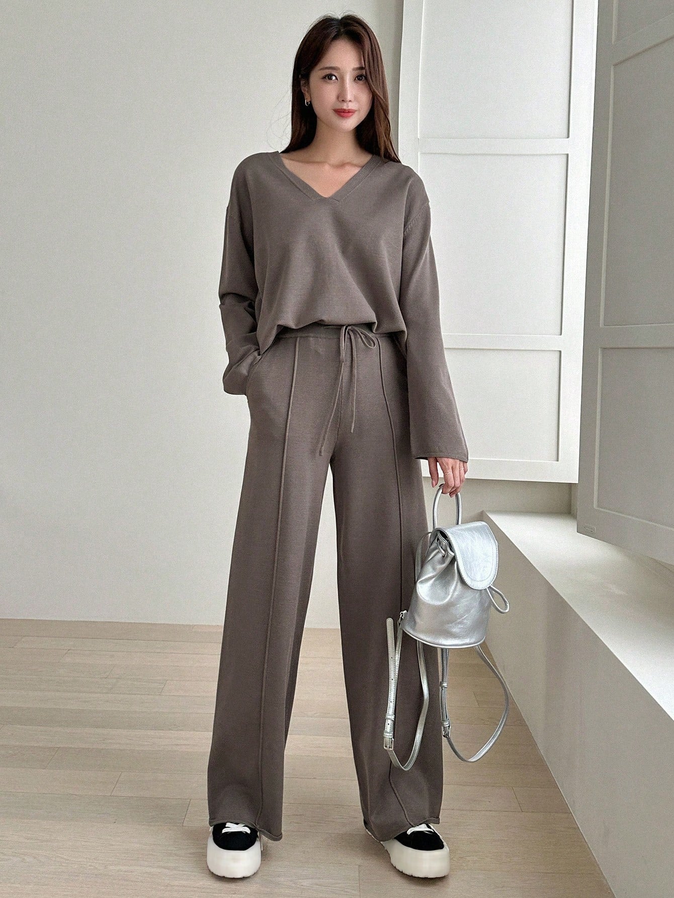 DROP SHOULDER TOP & DRAWSTRING WAIST KNIT PANTS