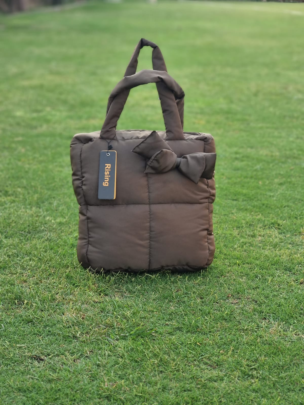 Large Square Puffy Hand Bag With Handle-Brown