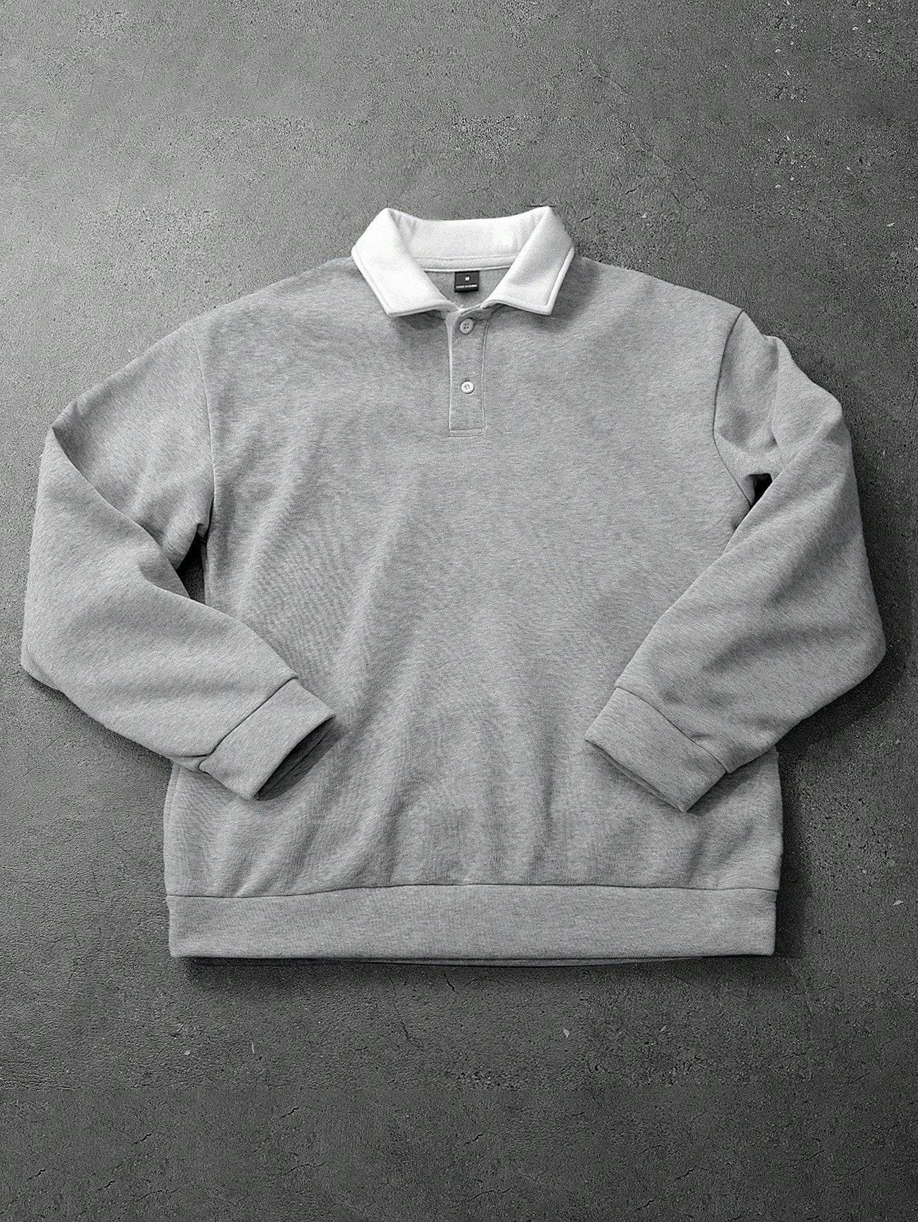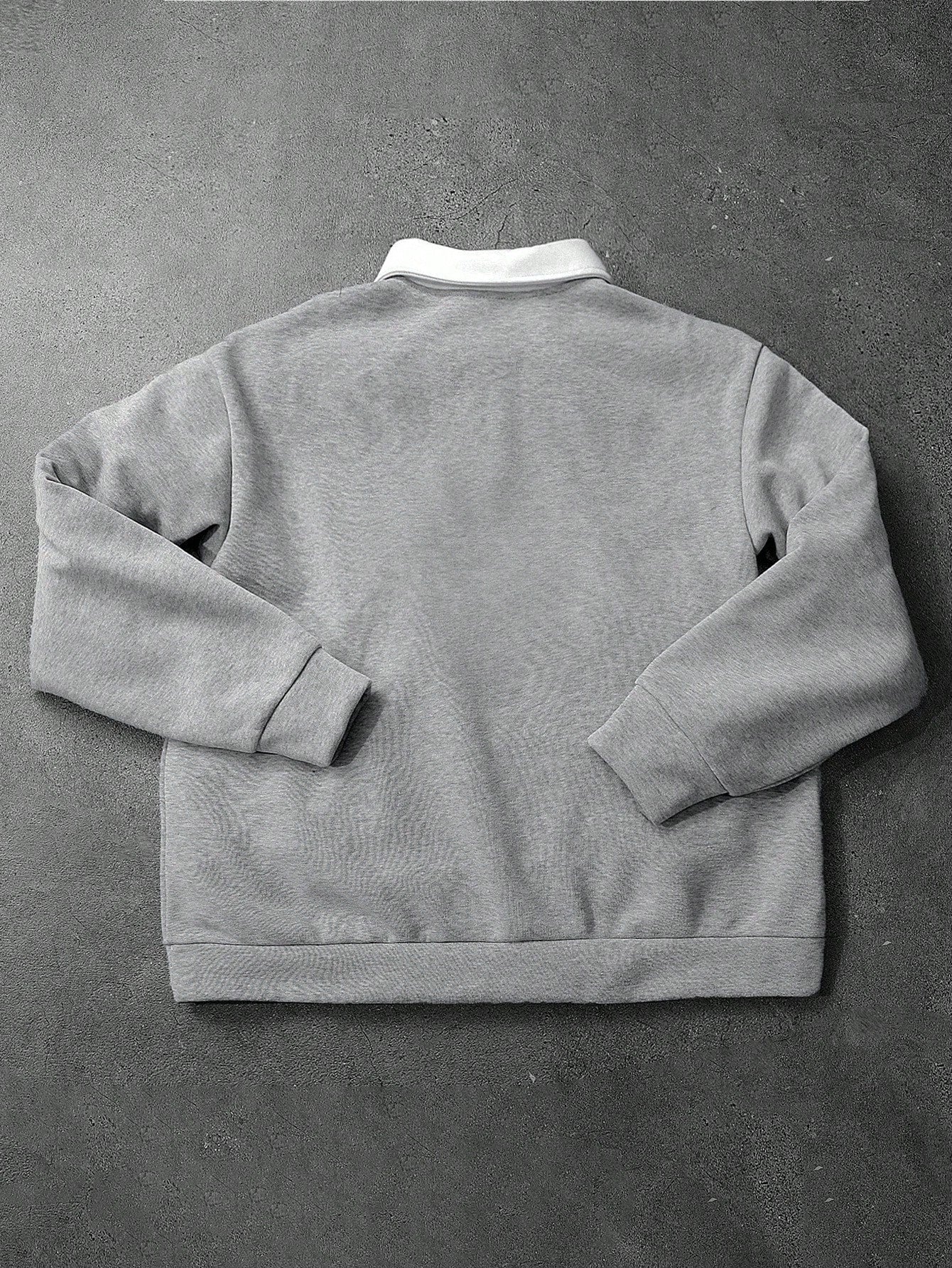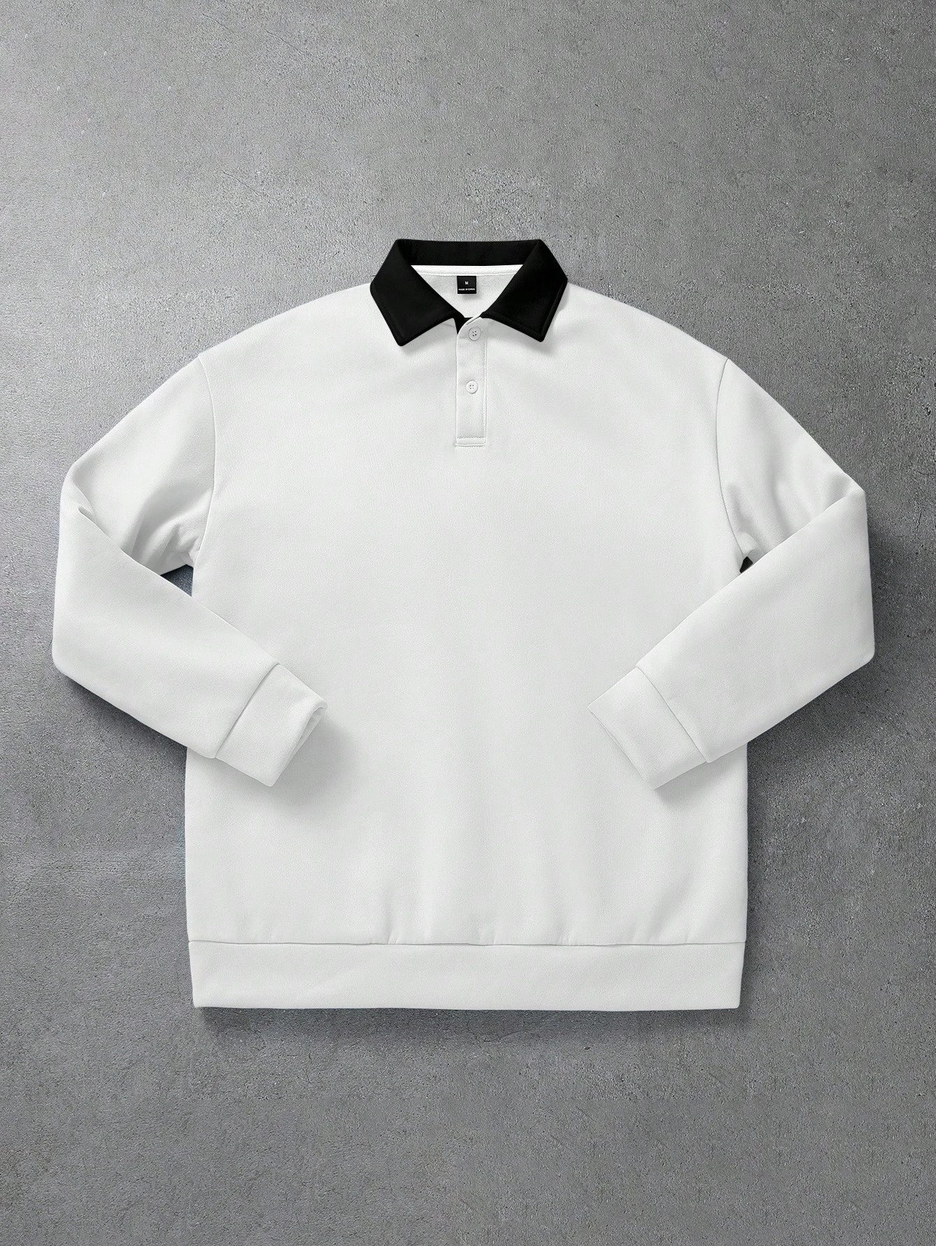 LOOSE FIT MEN'S CONTRAST COLLAR POLO NECK SWEATSHIRT