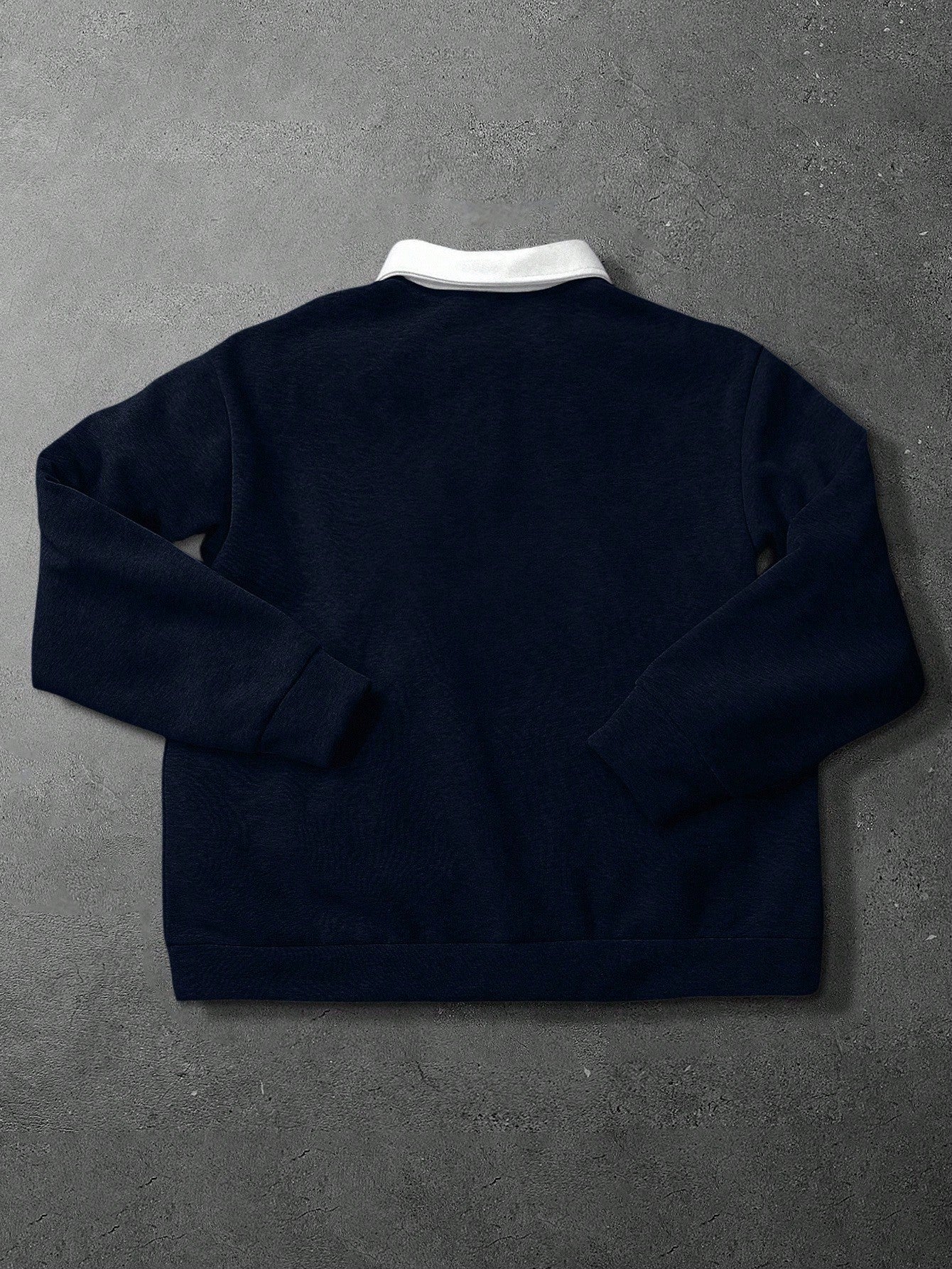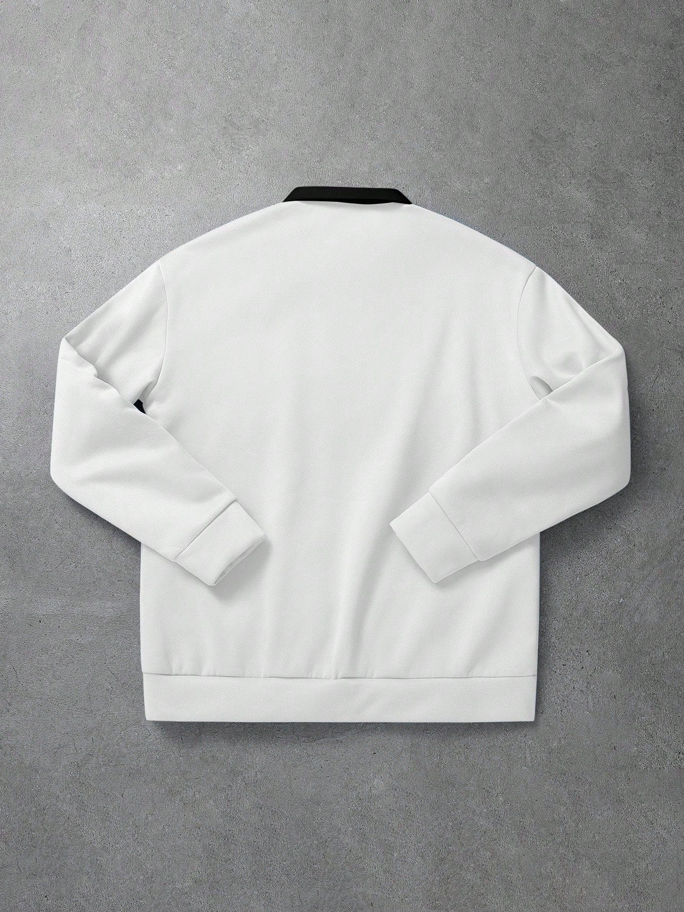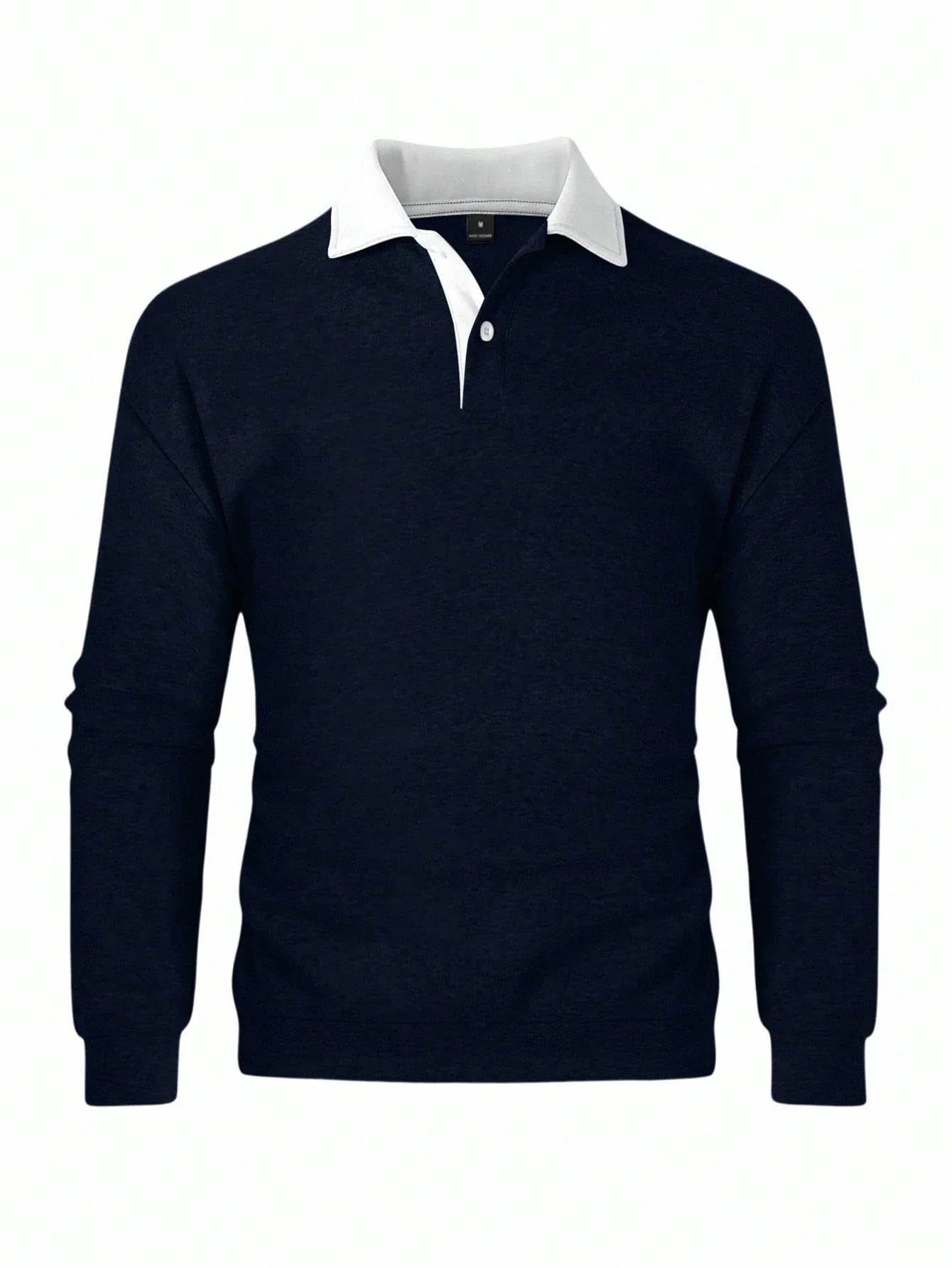 LOOSE FIT MEN'S CONTRAST COLLAR POLO NECK SWEATSHIRT