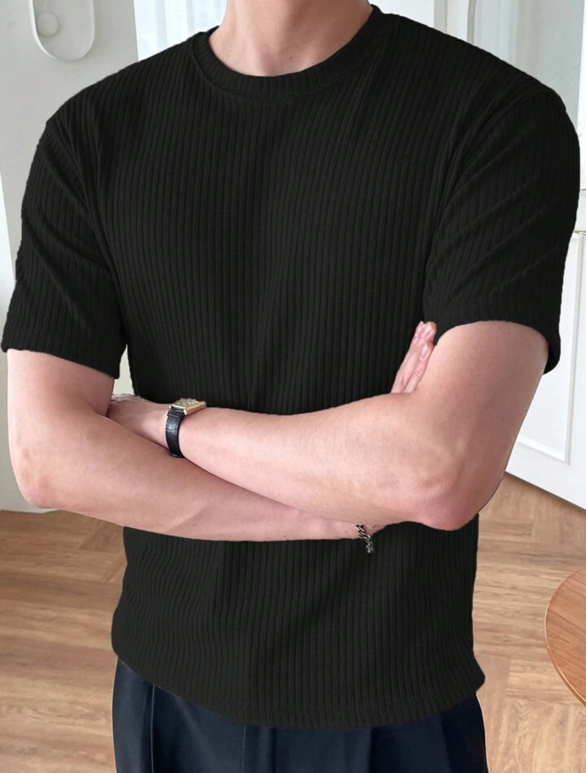 MEN LOOSE SOLID ROUND NECK TEE