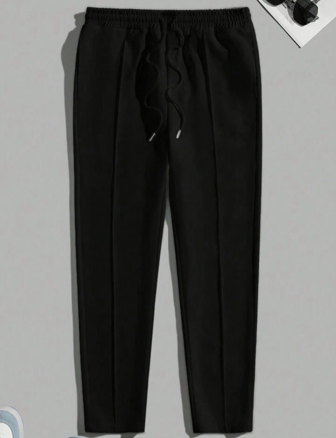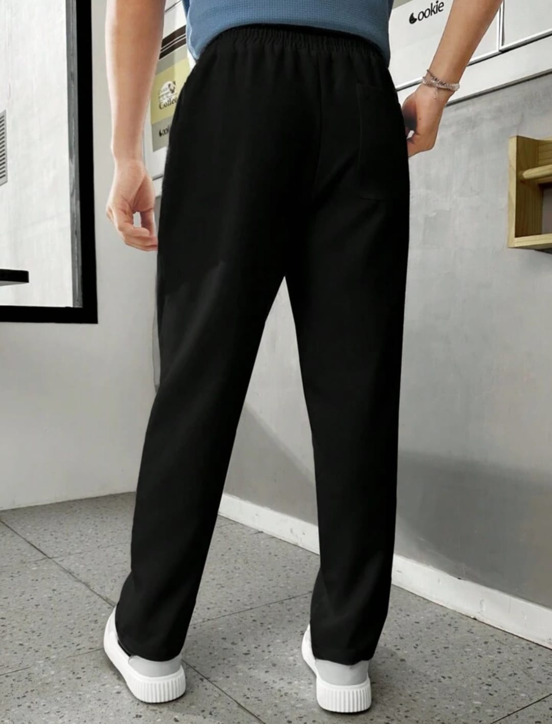 MEN SOLID COLOR DRAWSTRING WAIST SHUTTLE-WOVEN CASUAL PANTS