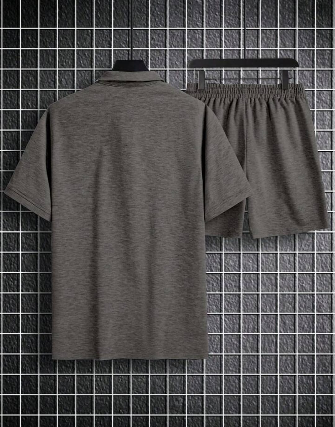 MEN SOLID COLOR TURN-DOWN COLLAR CASUAL SHORT SLEEVE T-SHIRT AND DRAWSTRING SHORTS SET