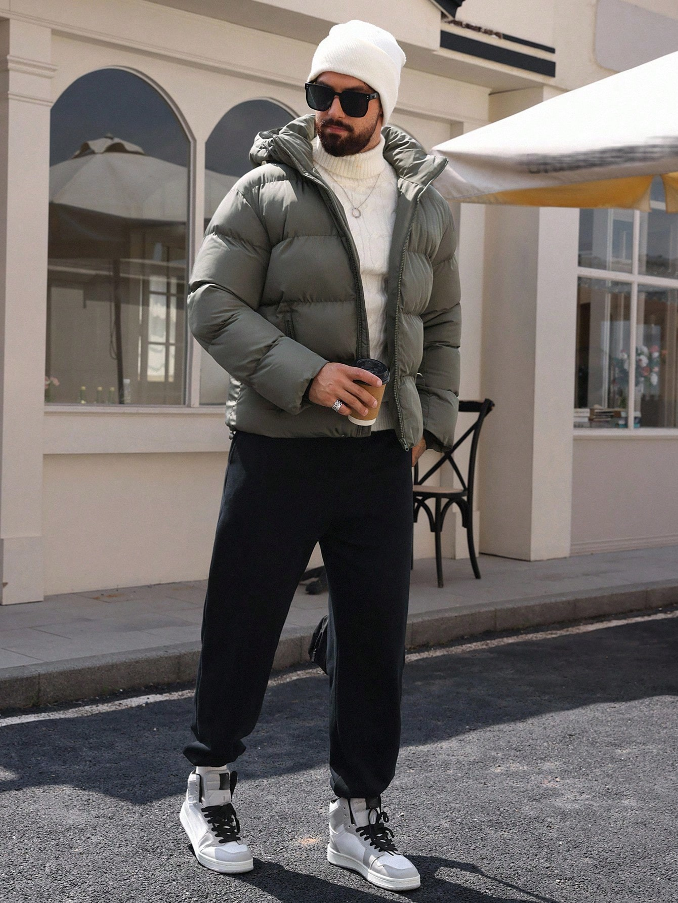 MEN'S HOODED, DRAWSTRING PADDED COAT