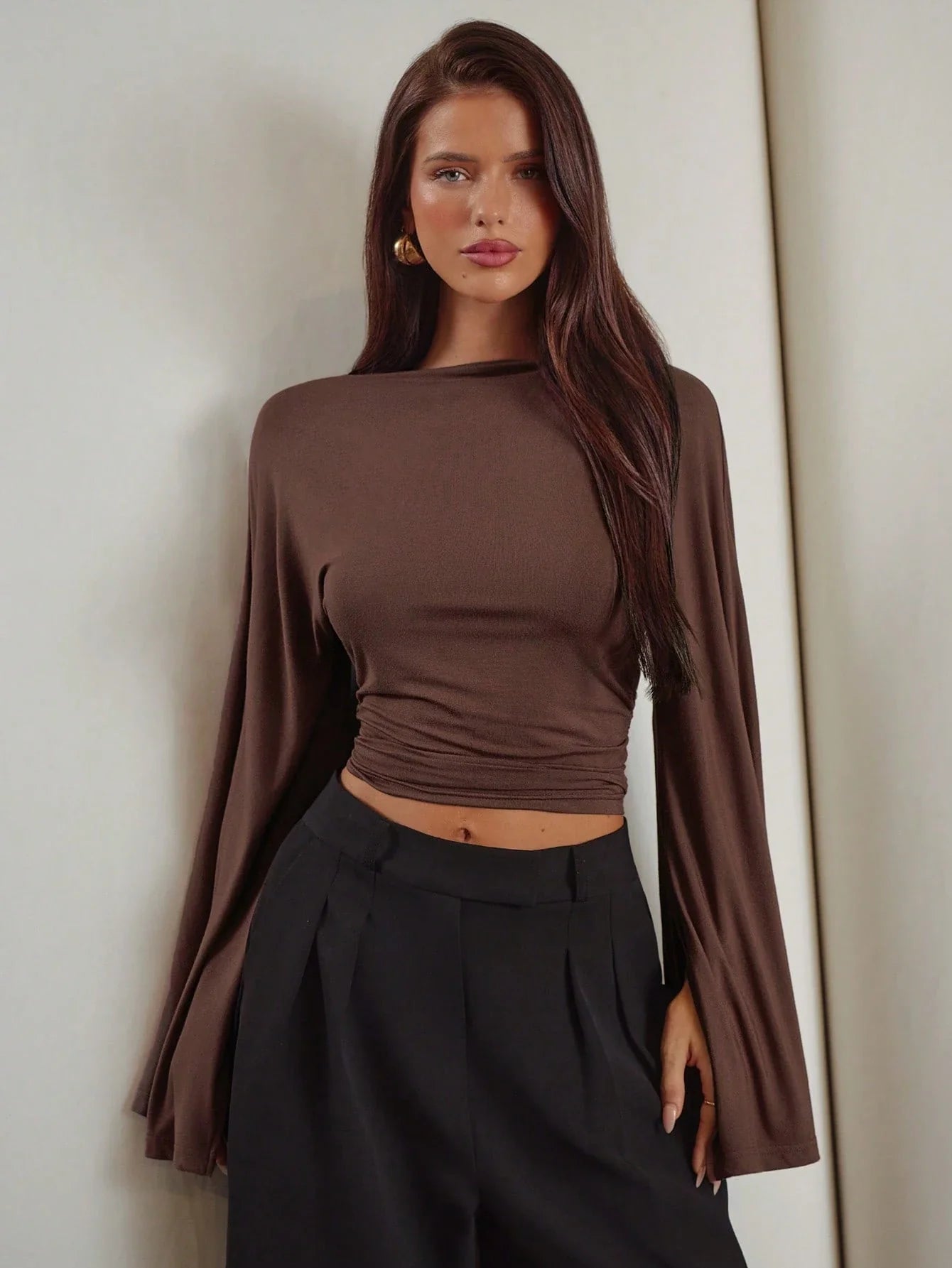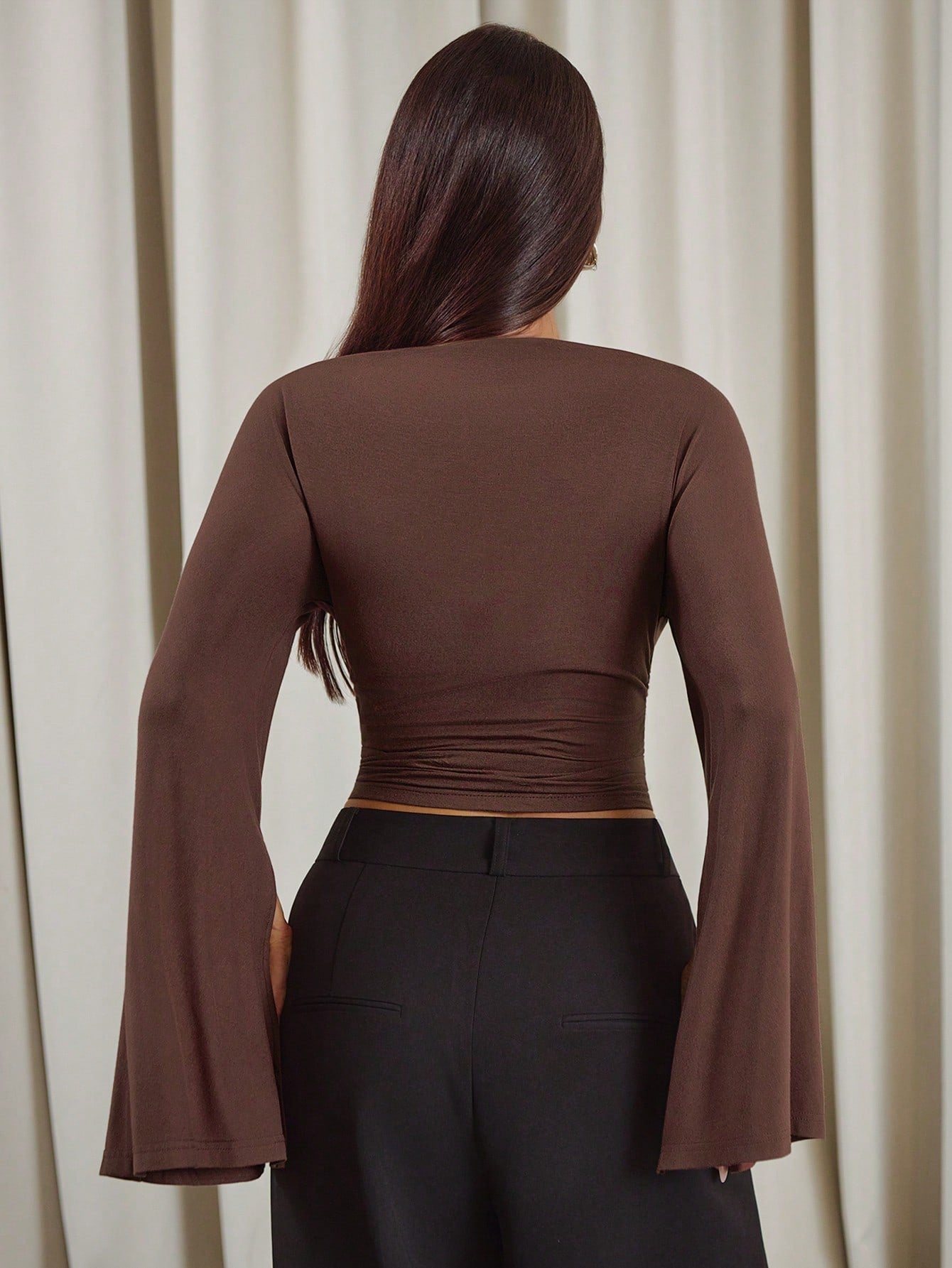 SOLID COLOR BELL SLEEVE CROPPED TOP