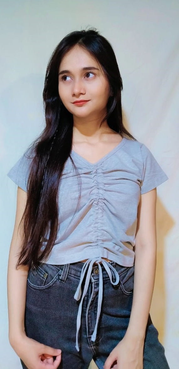 SOLID DRAWSTRING RUCHED TEE-GREY