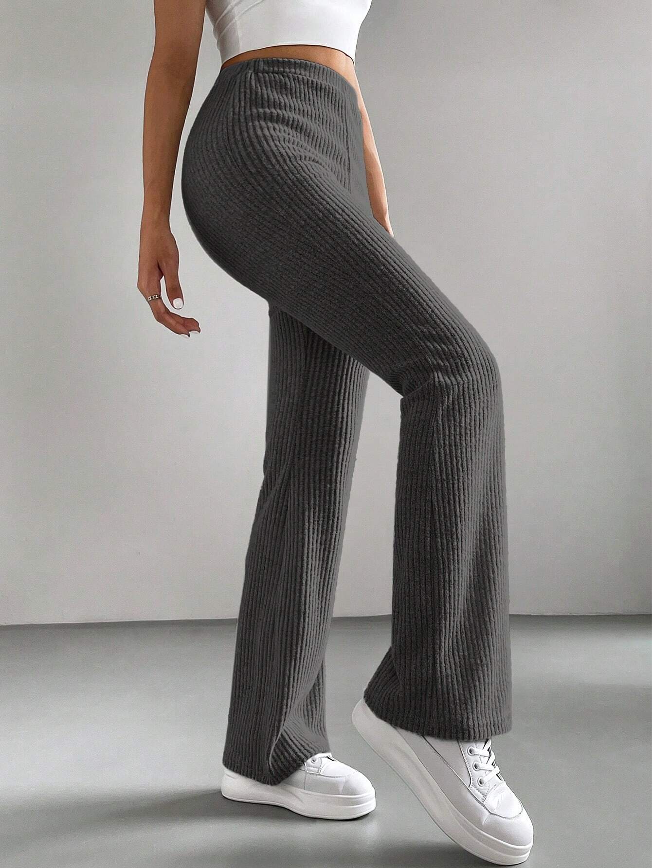 SOLID RIBBED FLARED-LEG PANT
