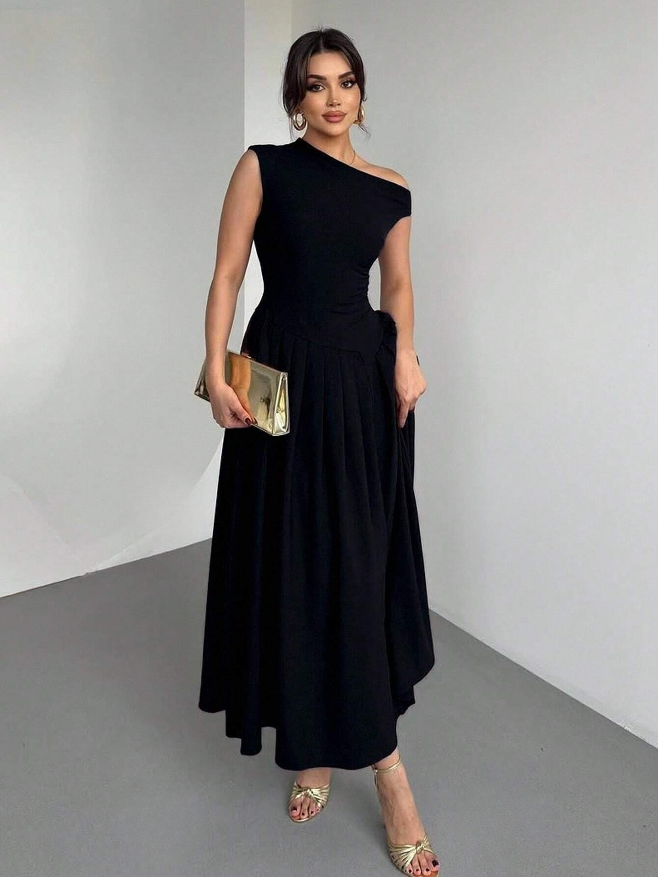 ASYMMETRIC NECK RUFFLE FLOUNCE DRESS