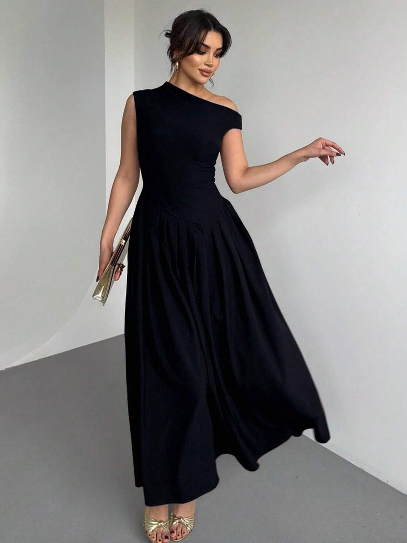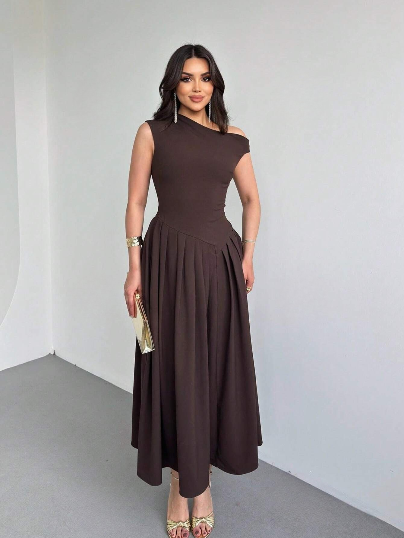 ASYMMETRIC NECK RUFFLE FLOUNCE DRESS