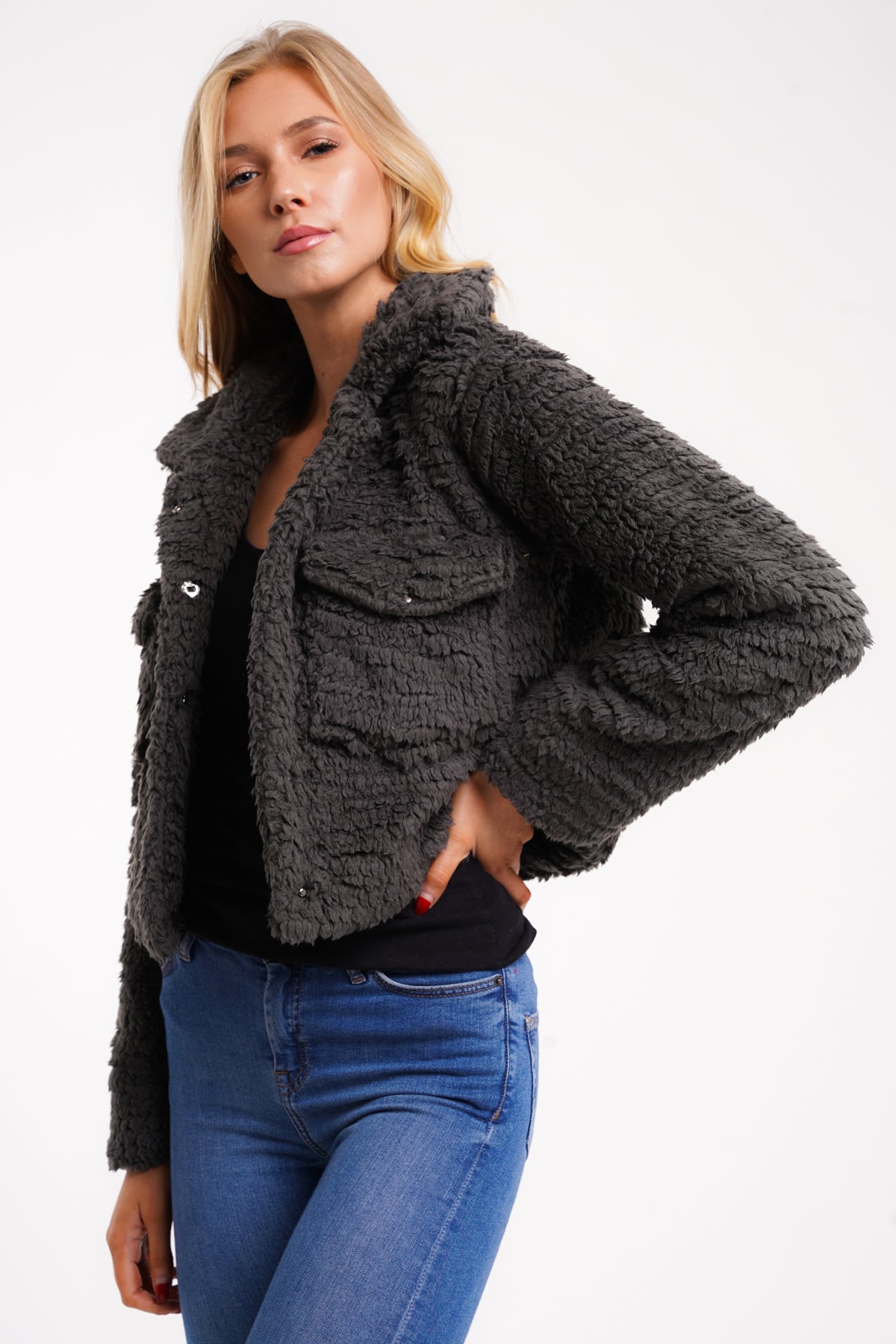 TEDDY TRUCKER JACKET WITH BUTTONS AND POCKETS