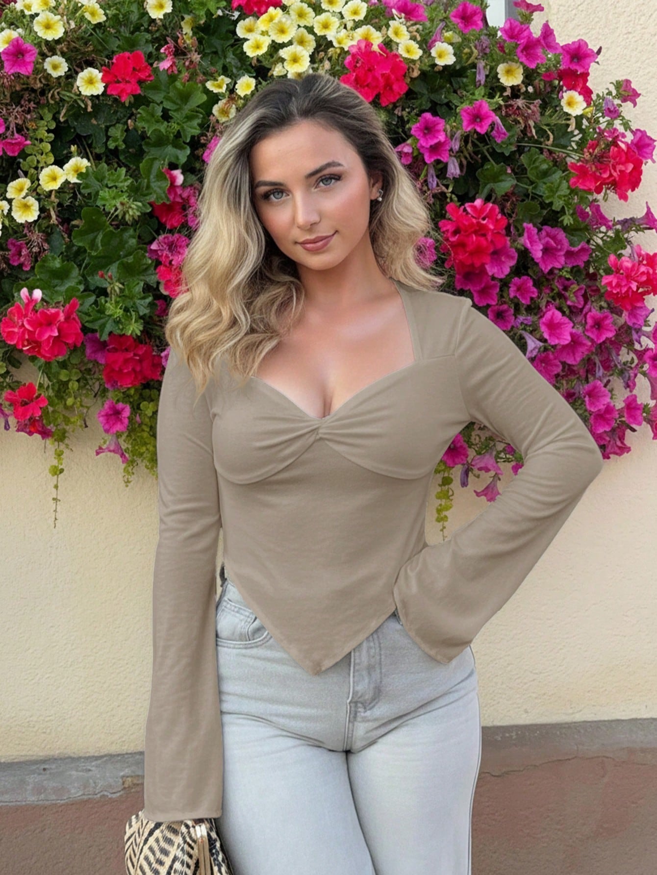 TRUMPET SLEEVE LETTUCE TRIM TWIST HANKY HEM CROP TOP