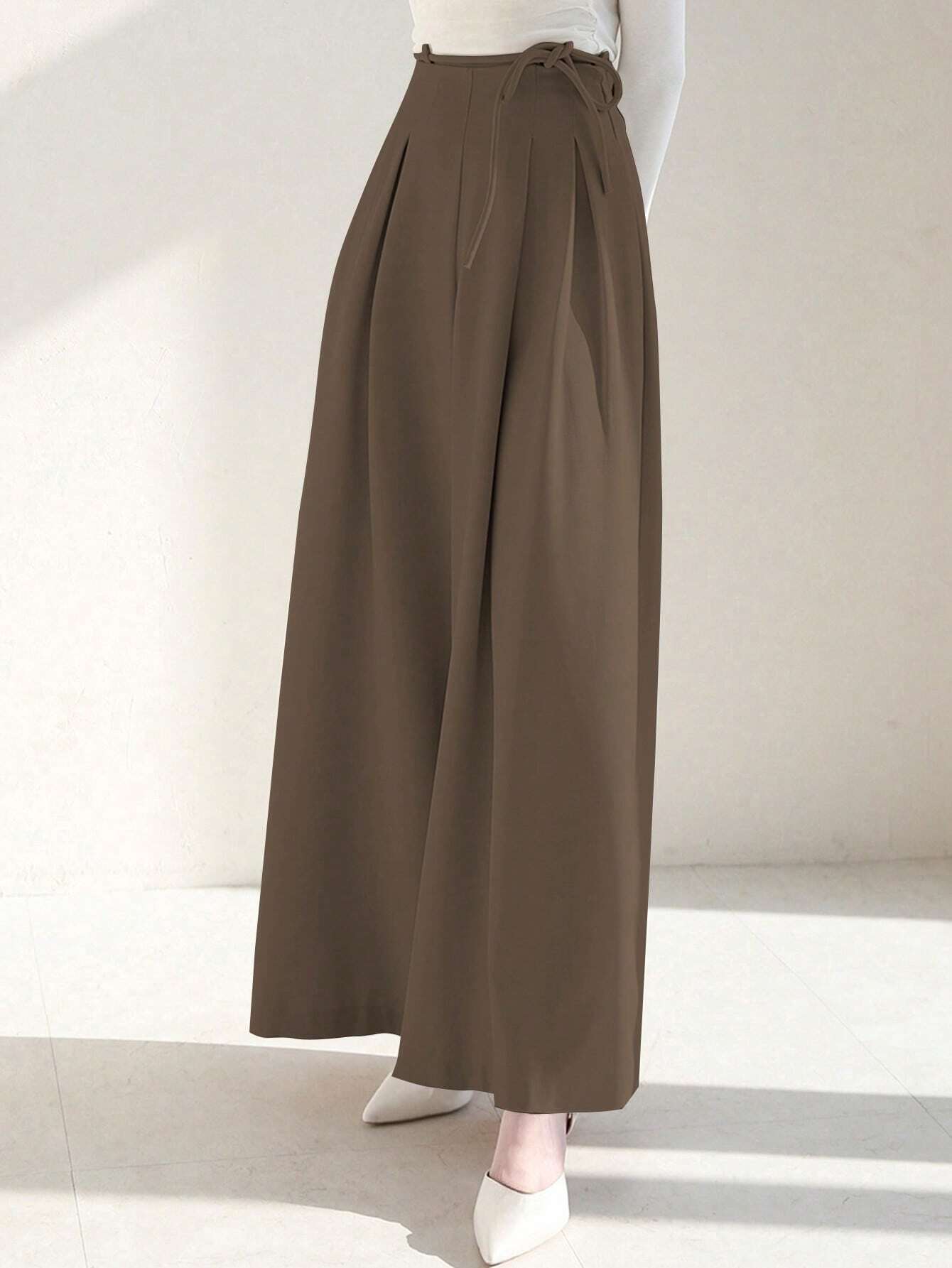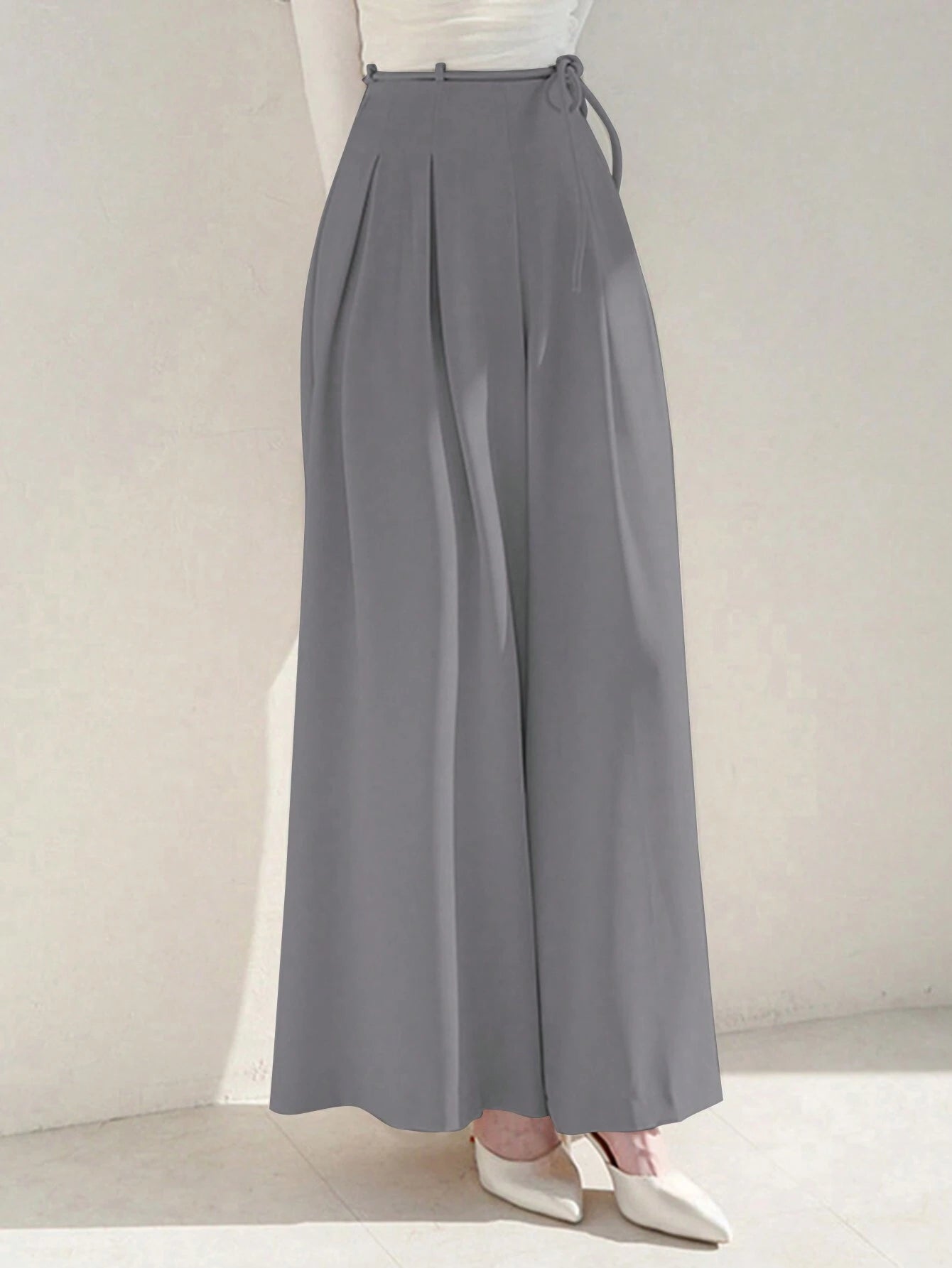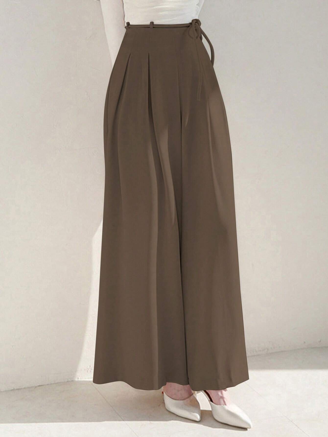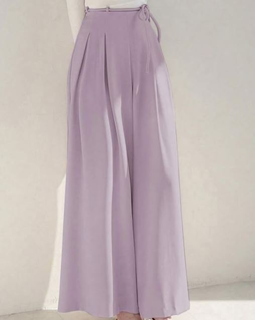 WOMEN SUMMER TIE WAIST SOLID COLOR WIDE LEG PANTS