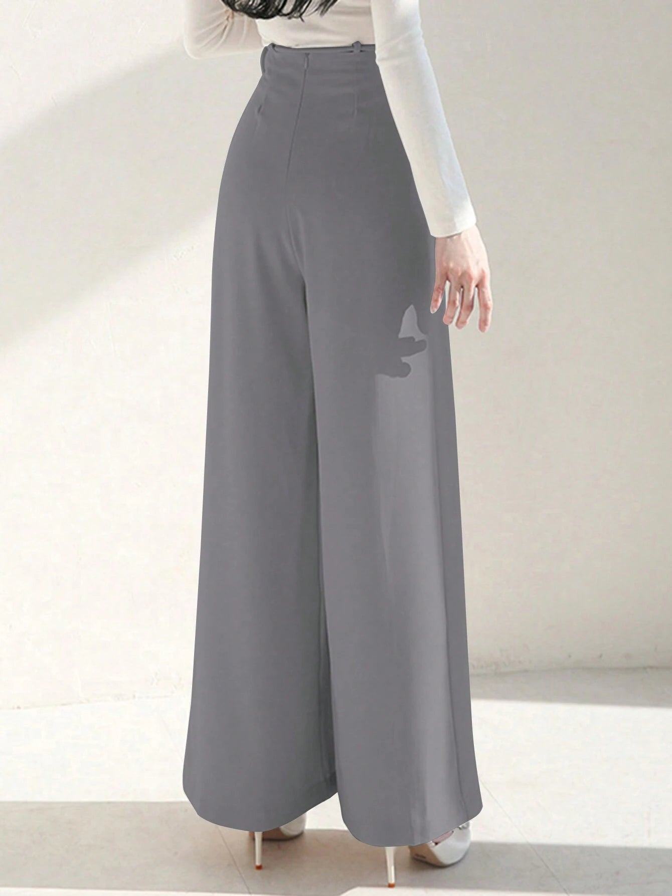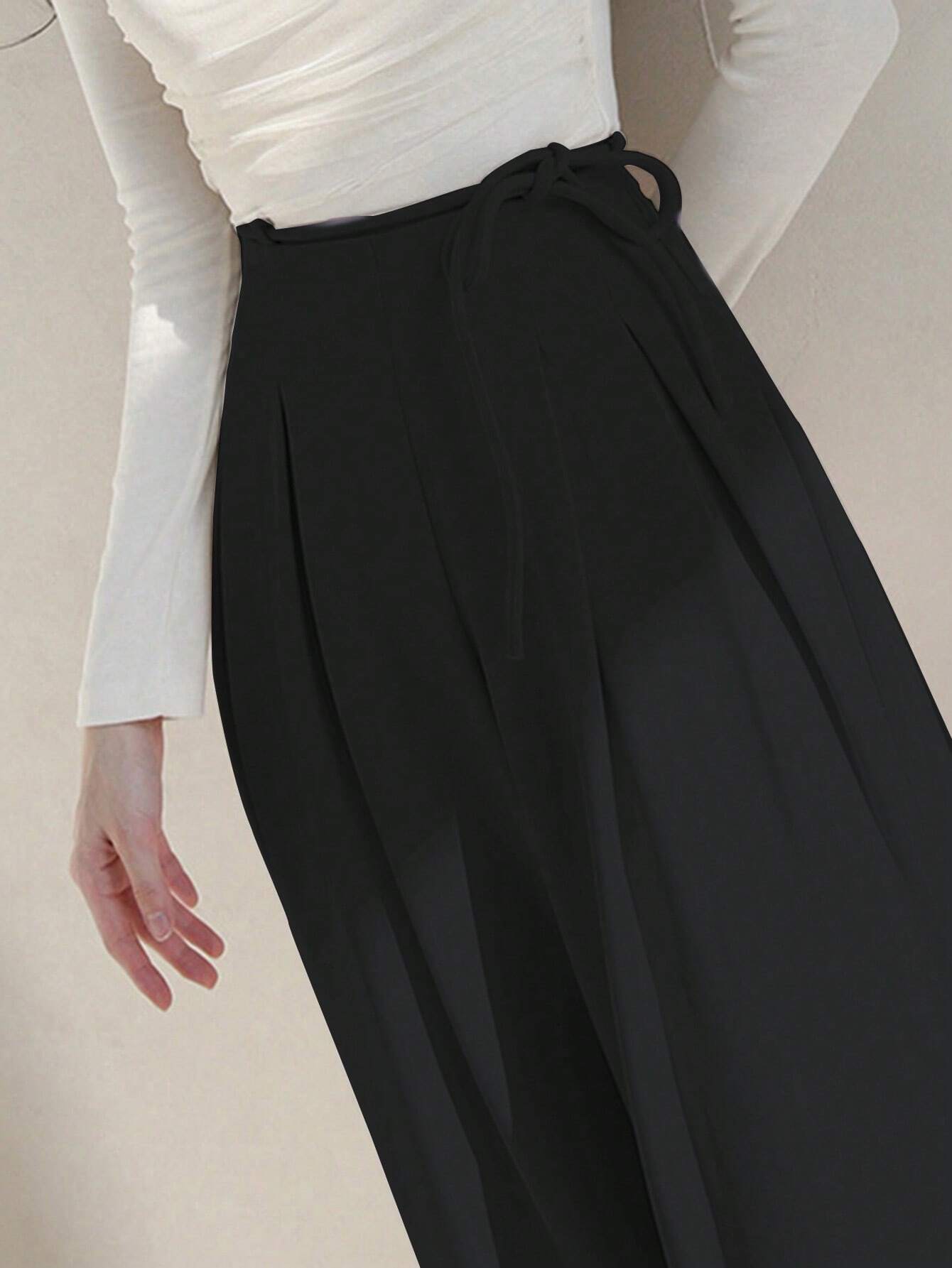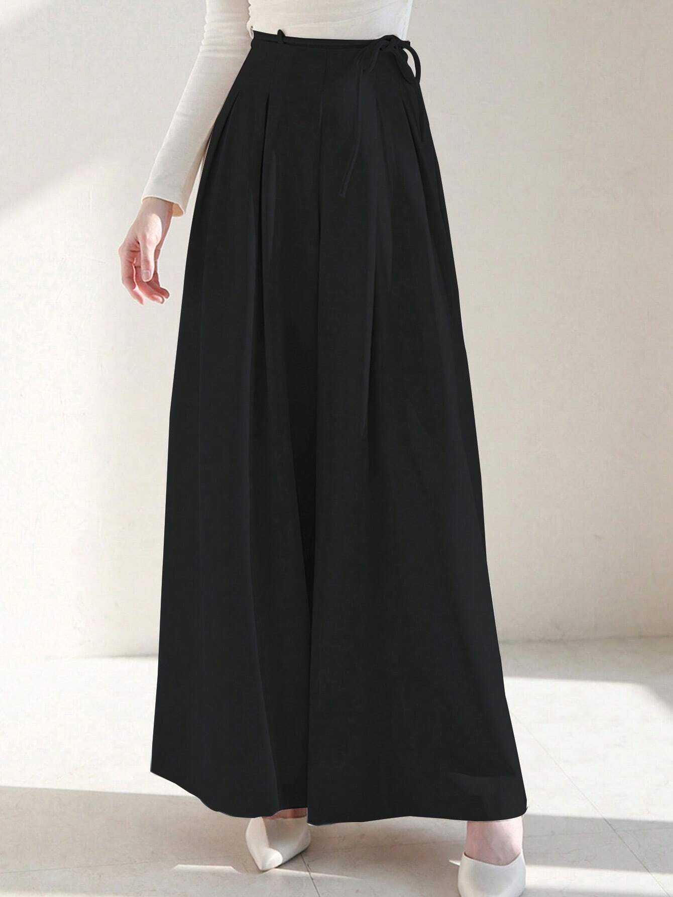 WOMEN SUMMER TIE WAIST SOLID COLOR WIDE LEG PANTS