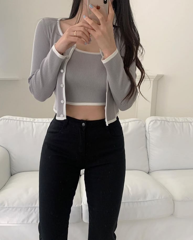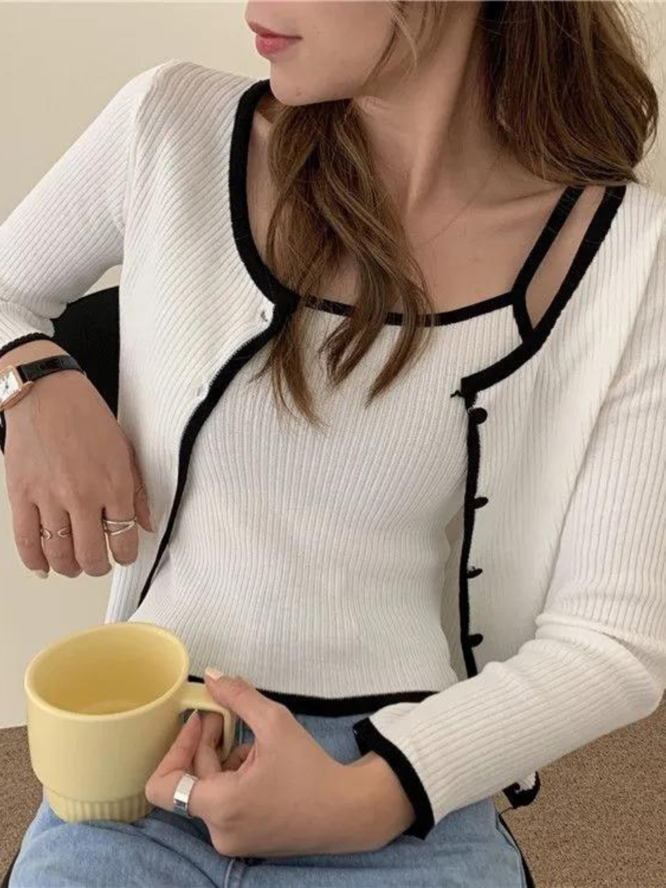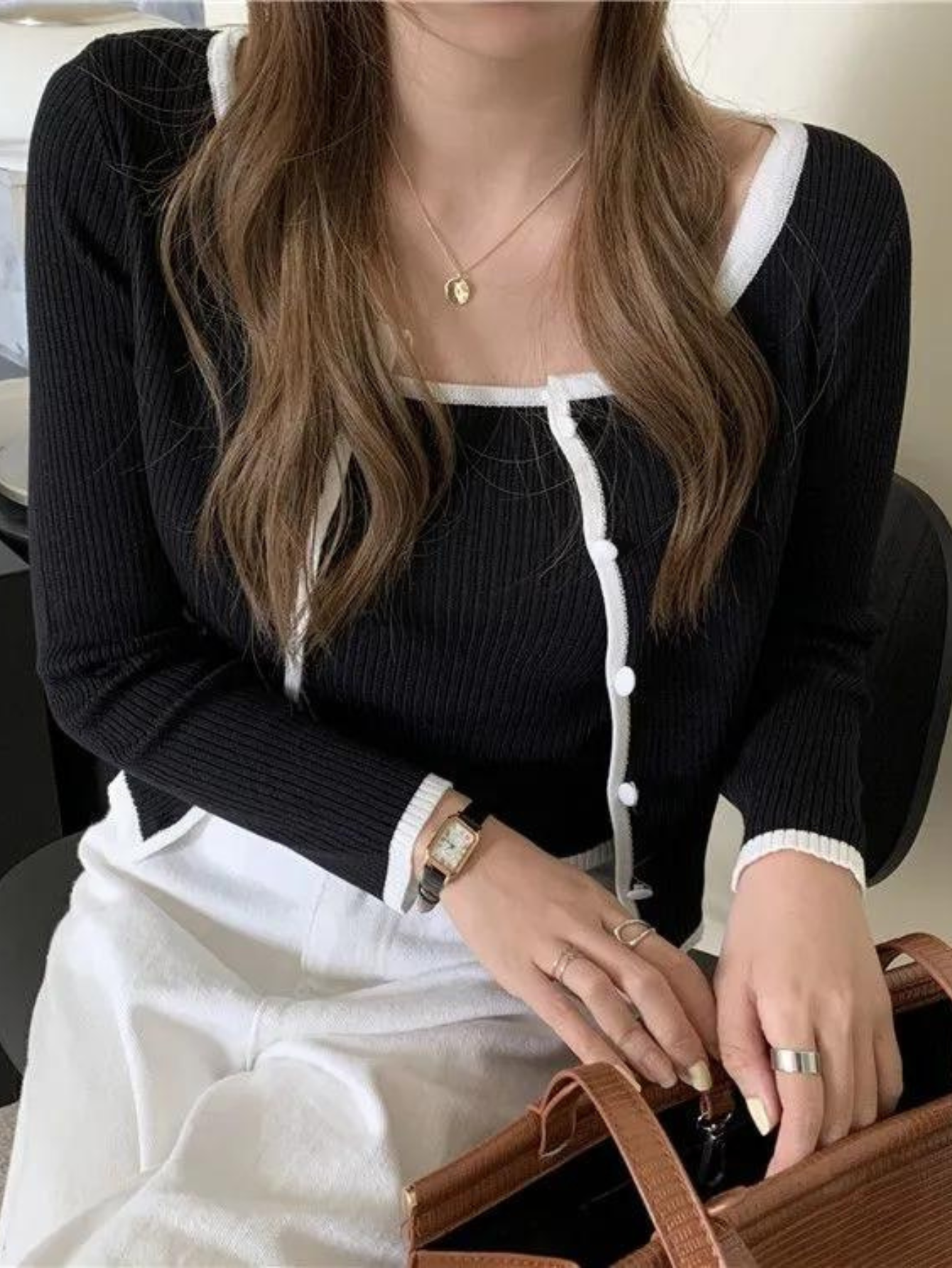 WOMEN'S CONTRAST TRIM BUTTON-UP LONG SLEEVE TOP