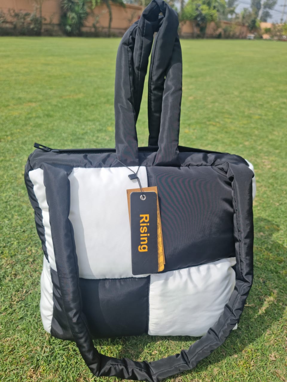Women's Quilted Checker Spry Black AND White Square Puffer Bag